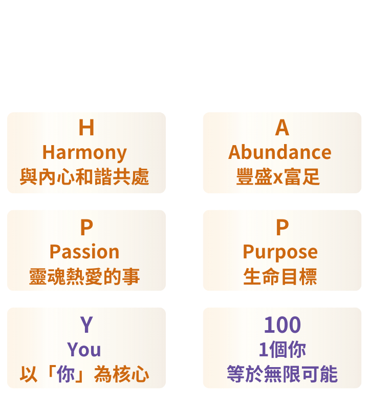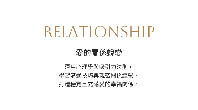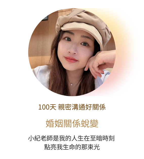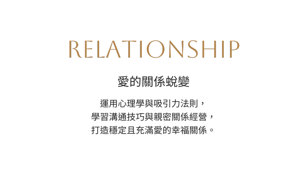 12歲時,親人因財務困境選擇自盡,改變了我的人生。不想人生留下遺憾,從12歲便開始尋找幸福的答案。直到我善用了NLP神經語言和NAC神經鏈調整的能力,成為一位幸福關係諮詢師,不僅精準有效翻轉自己的幸福,也幫助了無數人得到同樣的結果。