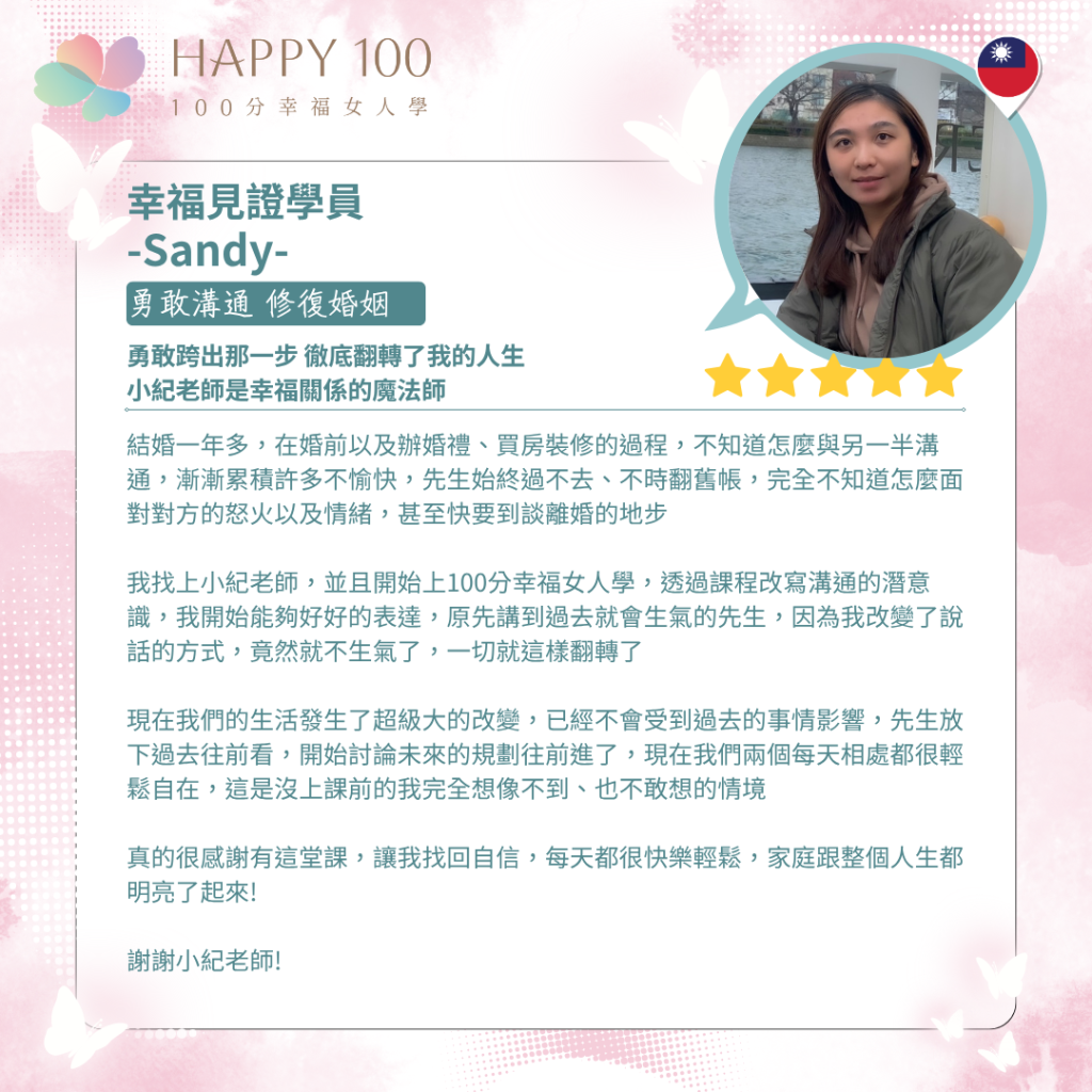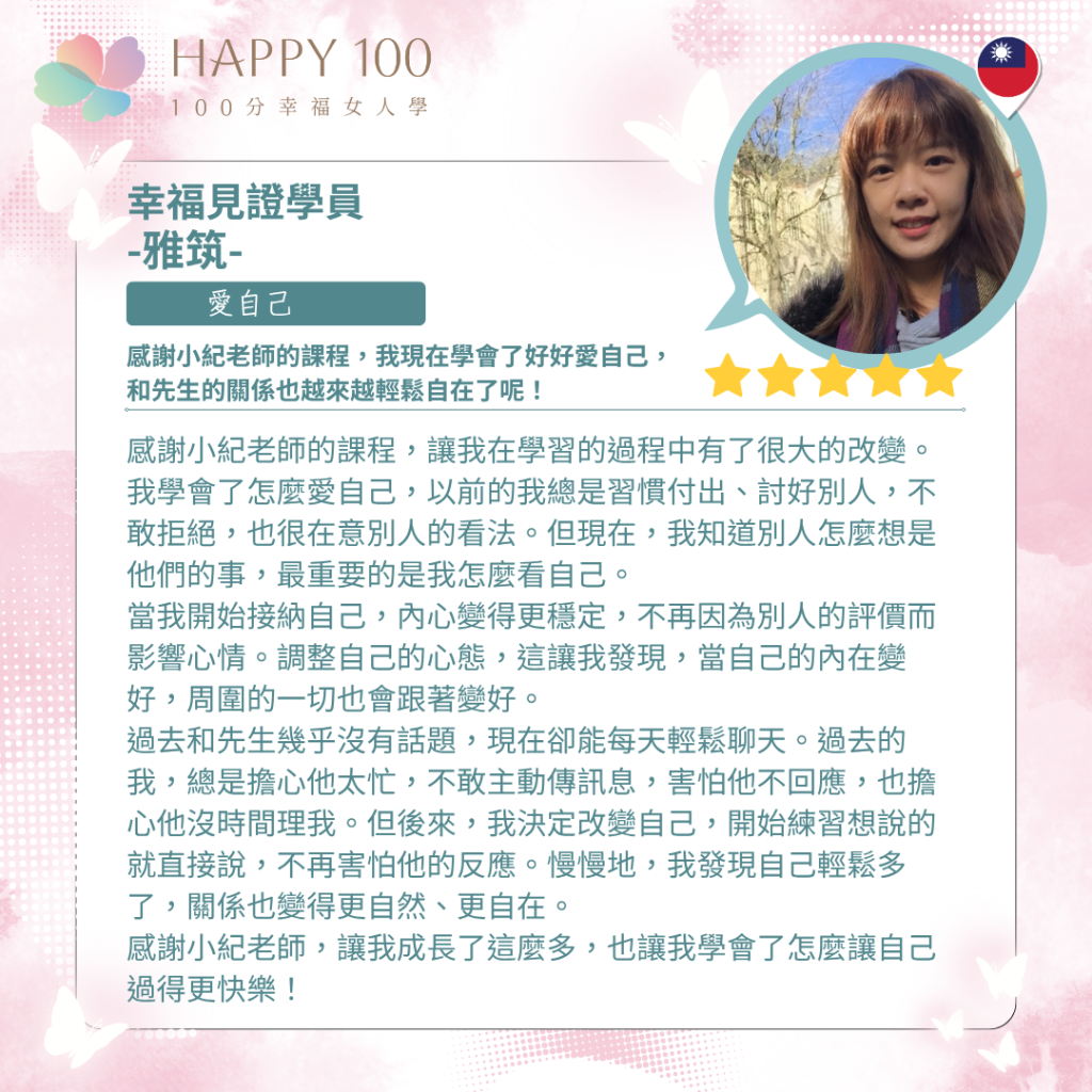 - 專注於華人女性的情感成長與幸福設計