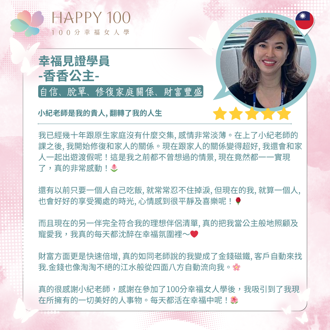 - 專注於華人女性的情感成長與幸福設計