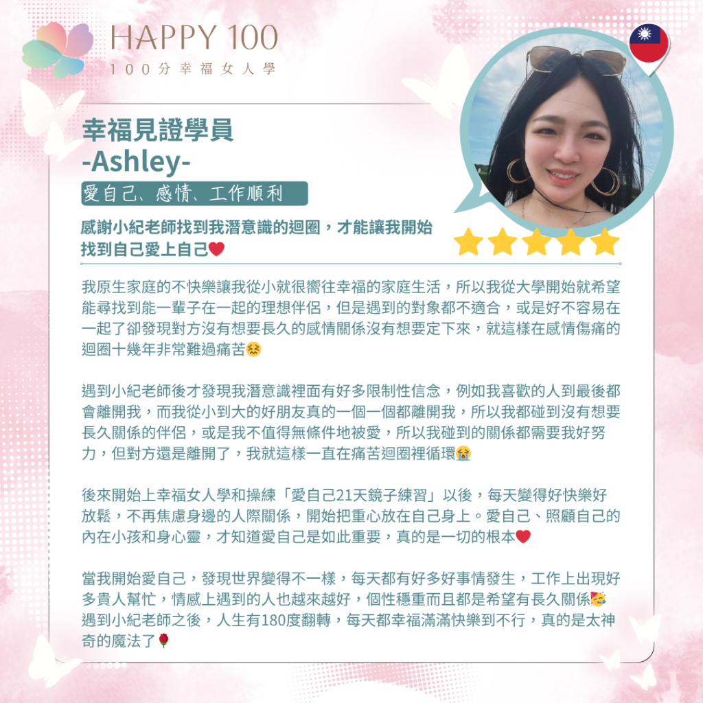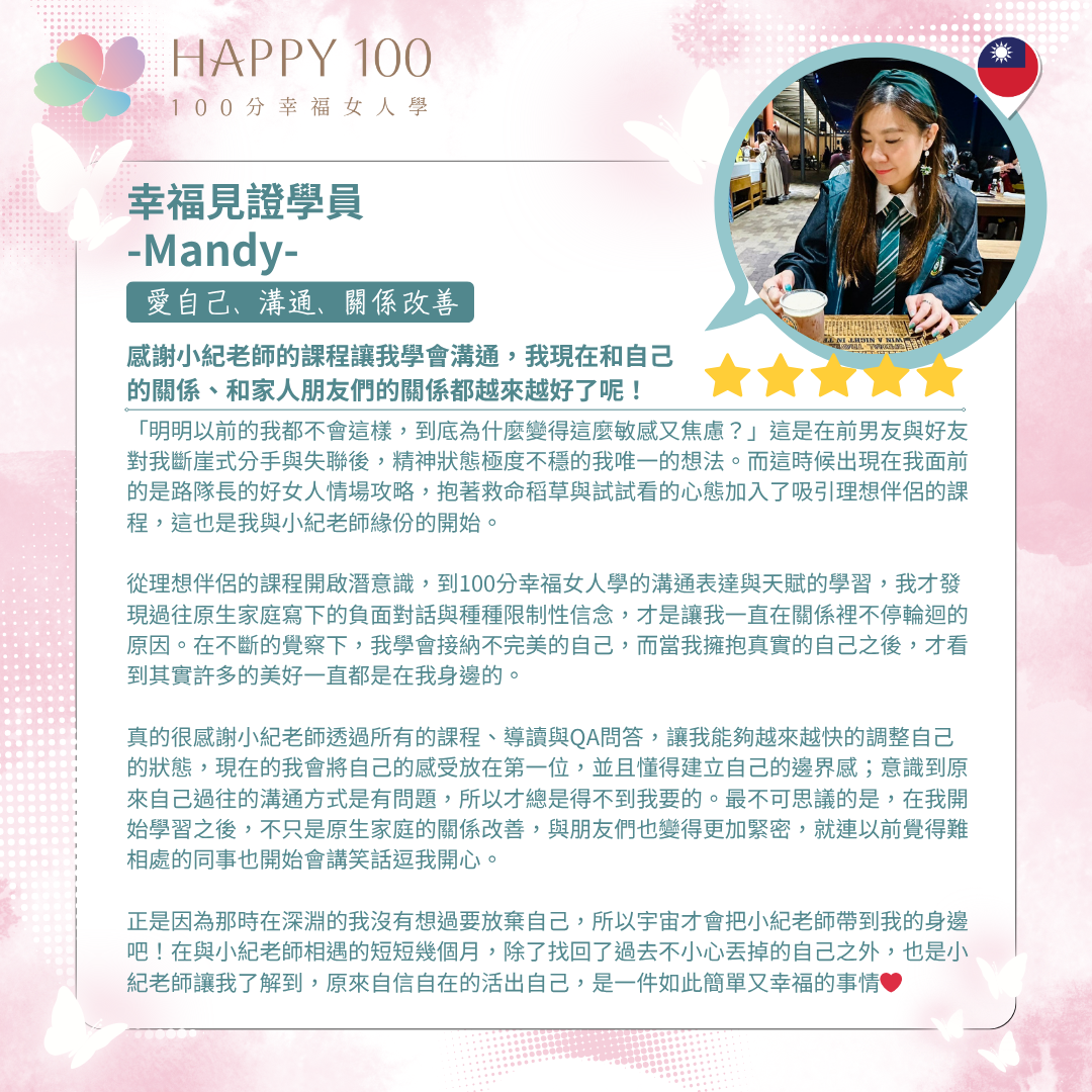 ✦ 創立「100分幸福女人學」,專注於設計幸福的系統性解決方案
